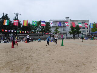 バトンを落とさず次に速くつなぐにはどうしたらよいのかをグループで考え、力を合わせて頑張りました。